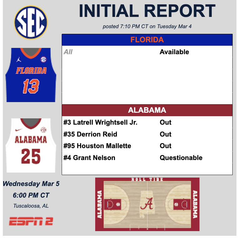 Concerning TN it also seems we play them in Knoxville more than Tuscaloosa when it comes to basketball. I'm sure that is incorrect though