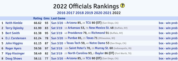 According to @kenpomeroy he’s the 8th best NCAA D1 Basketball official this season.