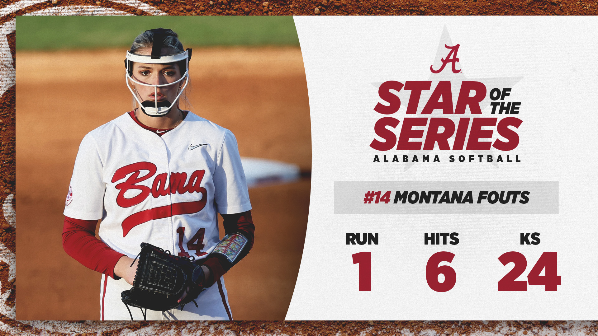 SEC Pitcher of the Week - Alabama's Montana Fouts, a senior right-hander from Grayson, Ky., was named to the Bama Bash All-Tournament Team after posting two wins and a save for the Crimson Tide. Fouts threw a complete-game shutout against No. 8 Virginia Tech, holding the Hokies to just three hits while fanning 11 batters. For the tournament, she struck out 24 batters in 13.1 innings pitched and held her opponents to a .130 batting average.