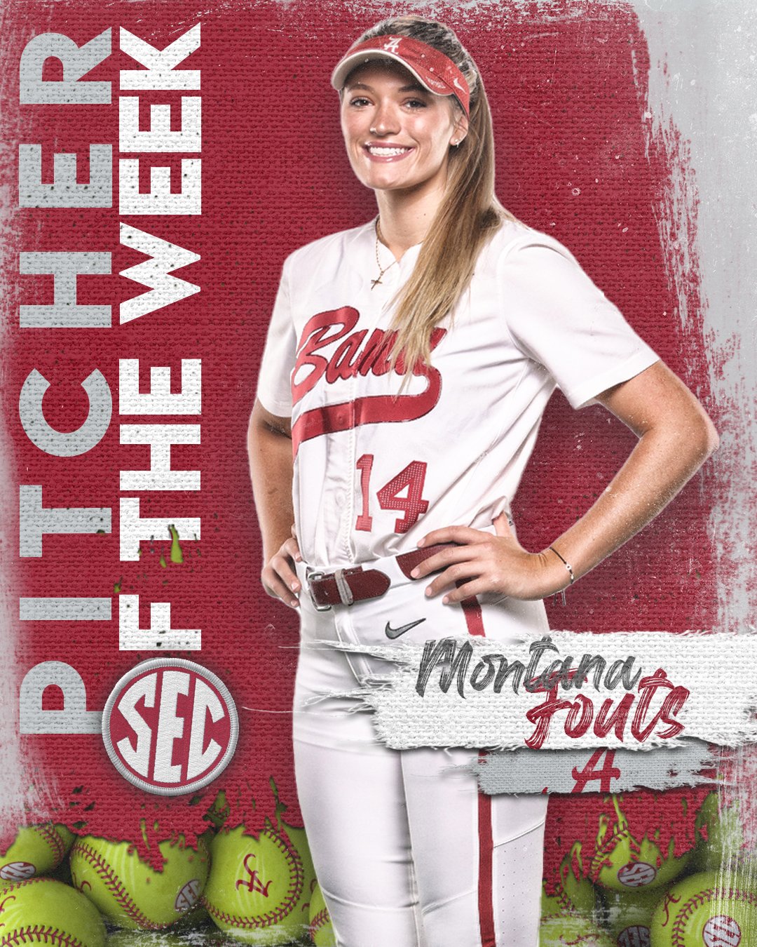 Alabama's Montana Fouts was named the SEC Softball Pitcher of the Week, announced Monday by the Southeastern Conference.