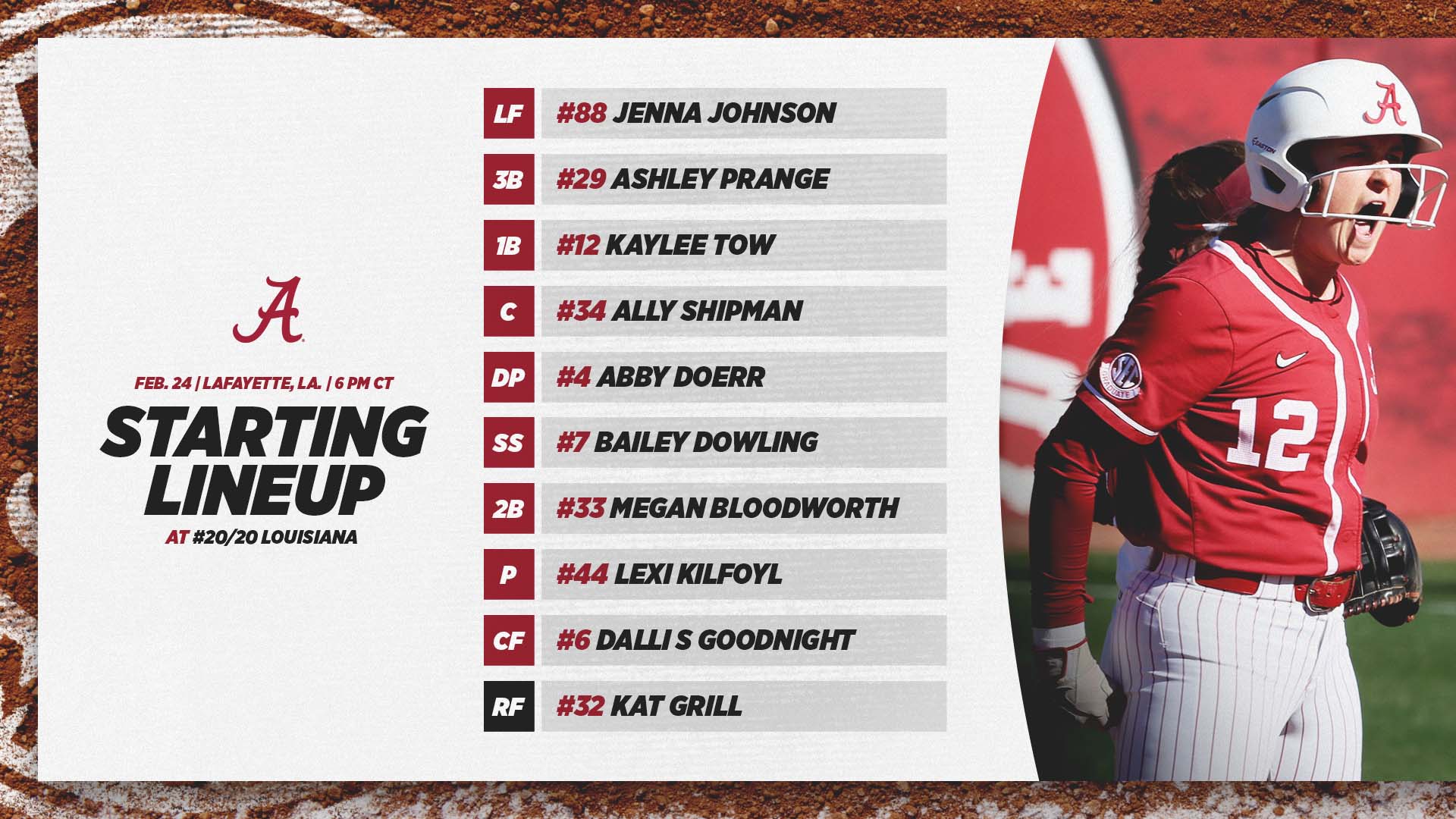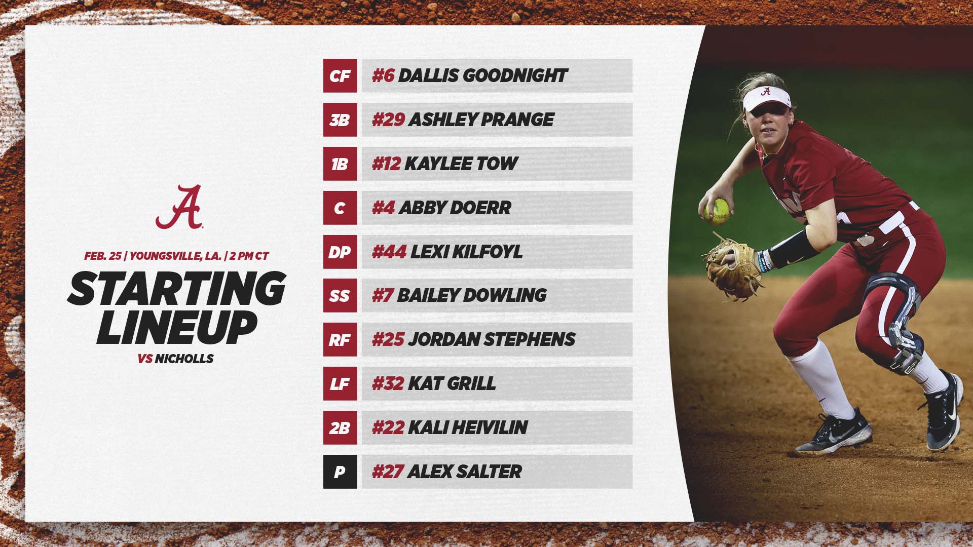 Sunday, Feb. 27 vs. #20/20 Louisiana – Youngsville, La. - 11 a.m. CT