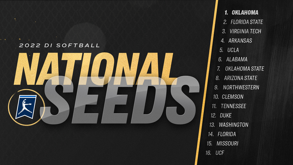 The first eight seeds have been announced. Oklahoma is the No. 1 overall seed, followed by No. 2 Florida State, No. 3 Virginia Tech, No. 4 Arkansas, No. 5 UCLA, No. 6 Alabama, No. 7 Oklahoma State and No. 8 Arizona State.