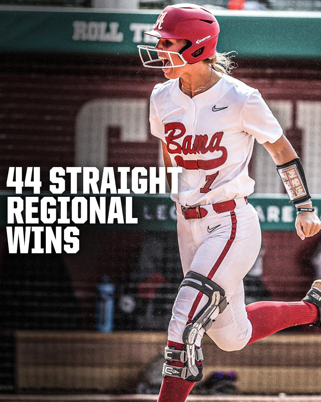 The longest win streak in NCAA Softball Tournament history @AlabamaSB