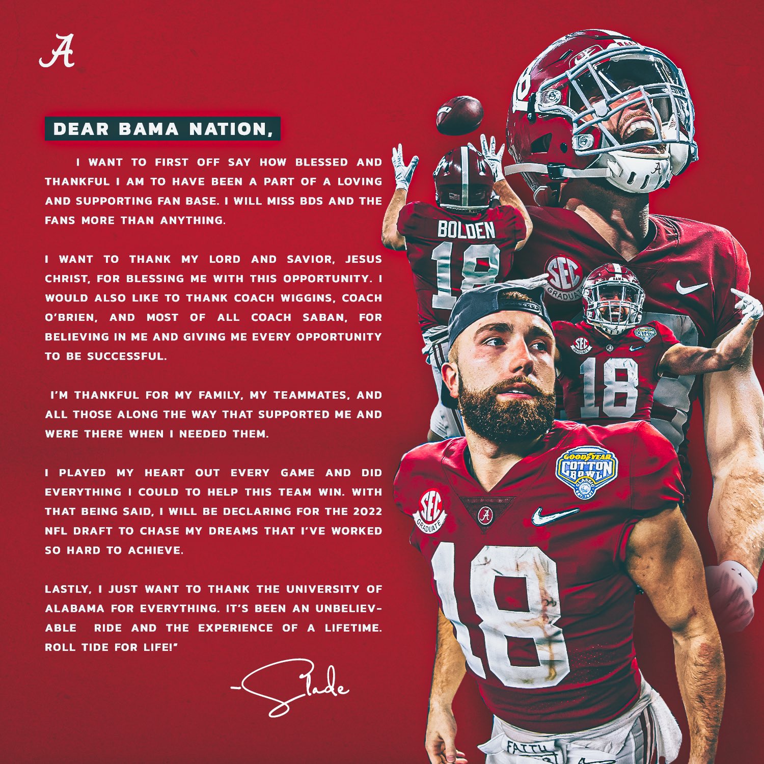 This spring and summer will be Slade's interview to become a grad assistant for the WR room. I think Slade will end up being a very good WR coach and recruiter in the next 3 to 5 years.