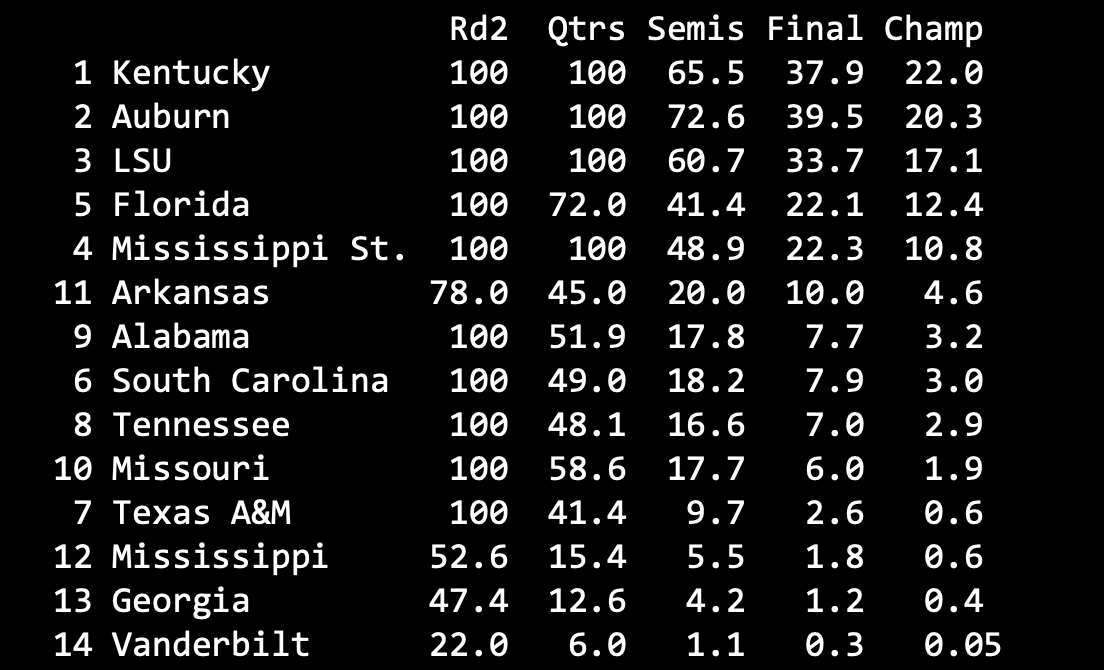I find it humorous that that chart gives us a greater chance of winning Thursday than Tennessee.