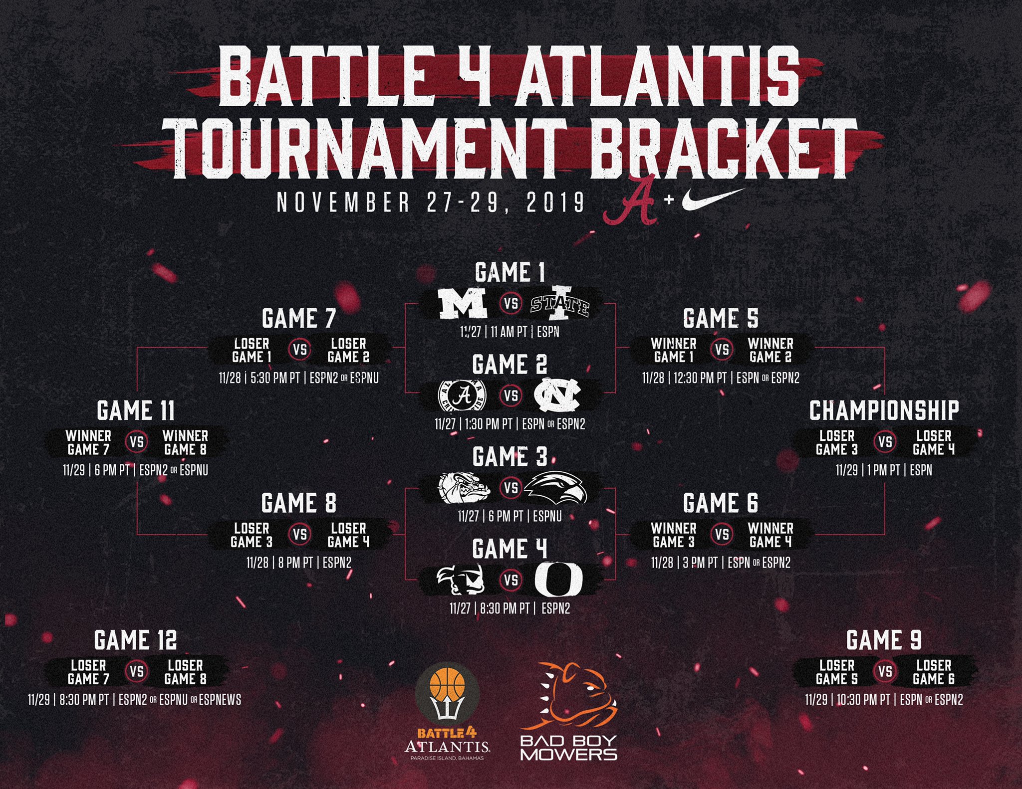 Tip for the North Carolina game will be 1:30 central on November 27th, the Wednesday before Thanksgiving.