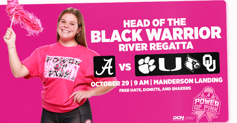 Come out this Saturday for @AlabamaRow's Power of Pink regatta! There will be FREE hats, donuts, and shakers