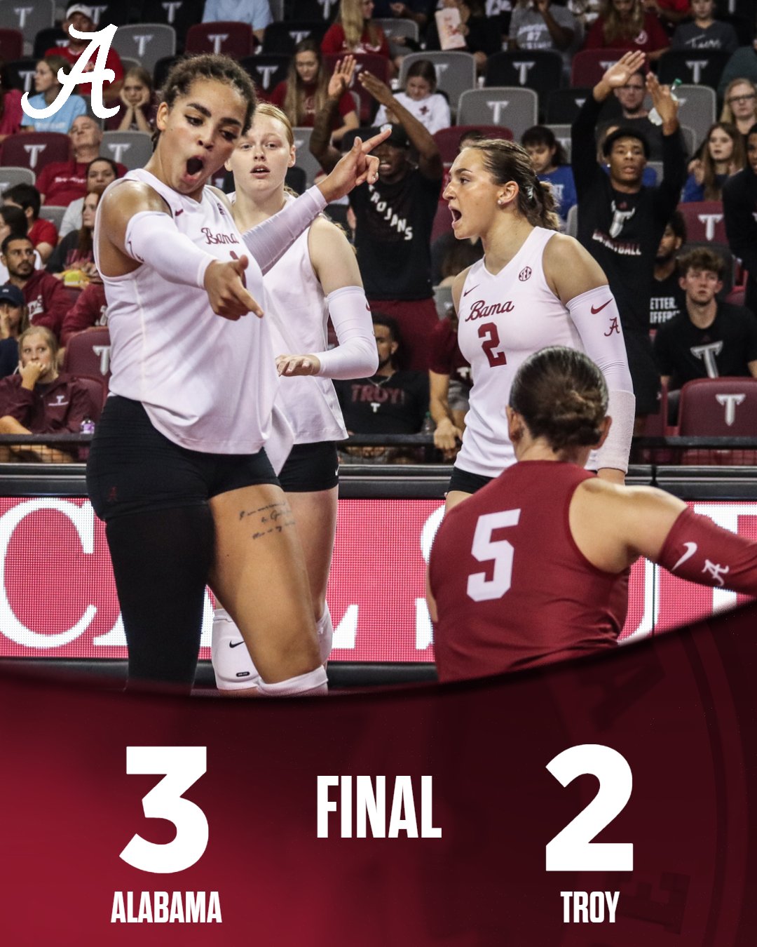 Alabama volleyball plays two matches this week, hitting the road for an in-state matchup Thursday at Troy before returning home to host Grambling State on Saturday.