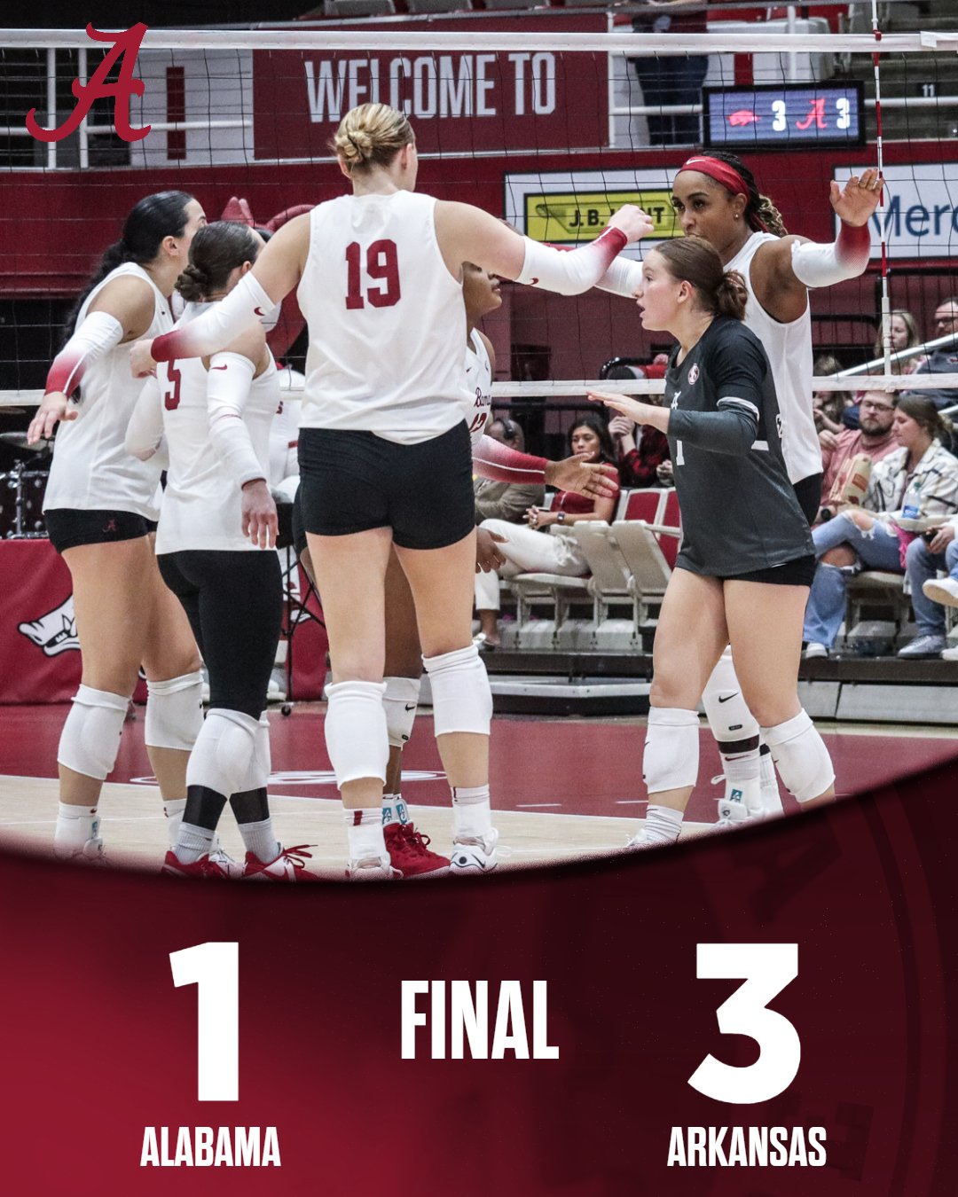 TUSCALOOSA, Ala. – Alabama (10-7, 0-6 SEC) is back on the road this weekend, facing its fourth opponent in the last five matches in 12th-ranked Arkansas (15-2, 5-0 SEC) Sunday on the SEC Network.
