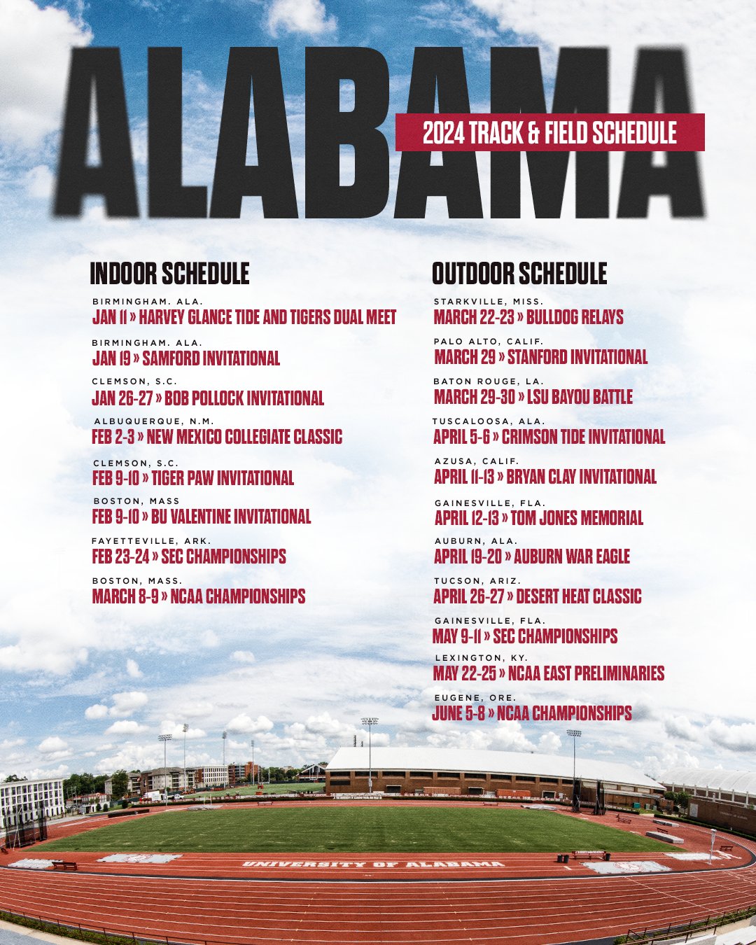 Alabama's women enter the meet as the reigning champion, while the men arrive as last year's third-place finisher.