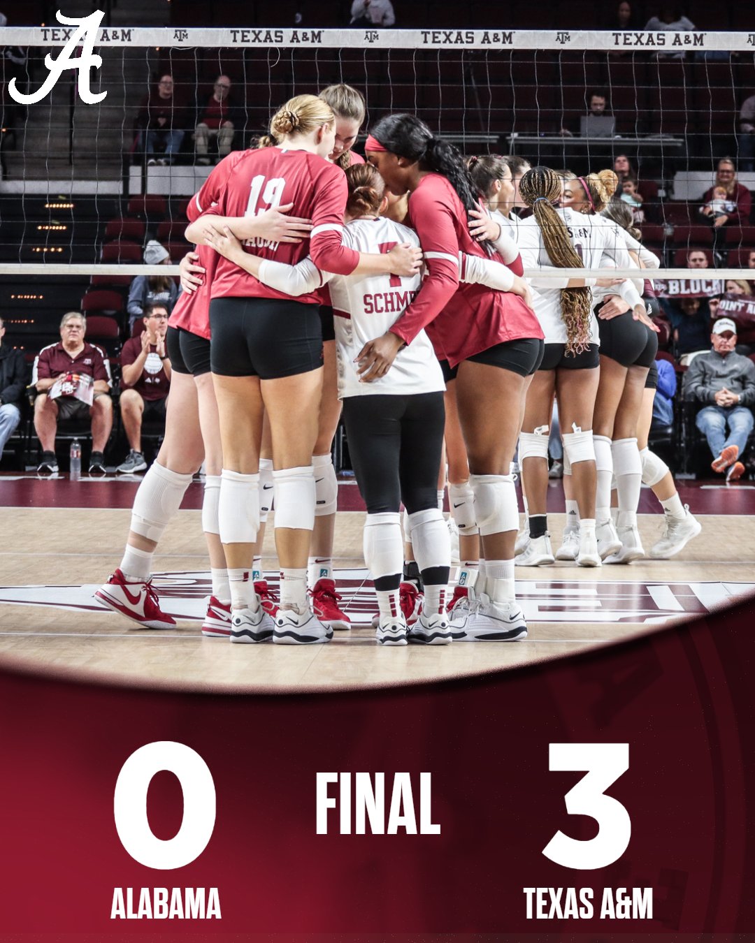 Alabama volleyball (10-12, 0-11 SEC) plays a pair of road matches this weekend, heading to College Station, Texas to face Texas A&M (14-7, 6-5 SEC) Friday at 6:30 p.m. CT before traveling to Baton Rouge for its second matchup of the season against LSU (9-11, 4-6 SEC) Sunday at 1 p.m. CT.