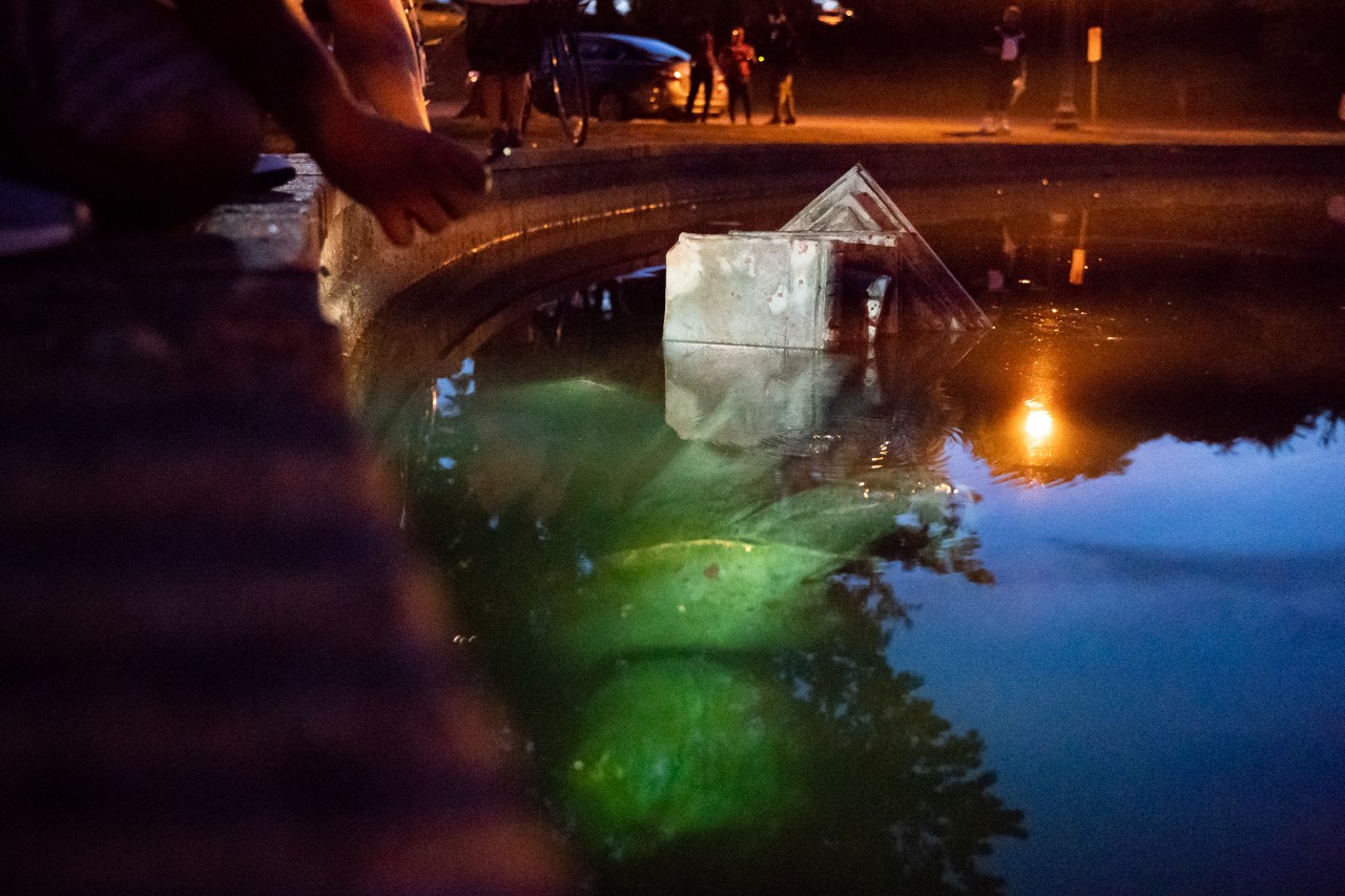 BREAKING: A statue of Christopher Columbus in Byrd Park has been removed by protesters and dragged into the lake. This is a developing story.