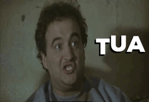 Can we make a gif from John Blutarski's "Toga! Toga! Toga!" chant in Animal House, but have it show "Tua! Tua! Tua!"