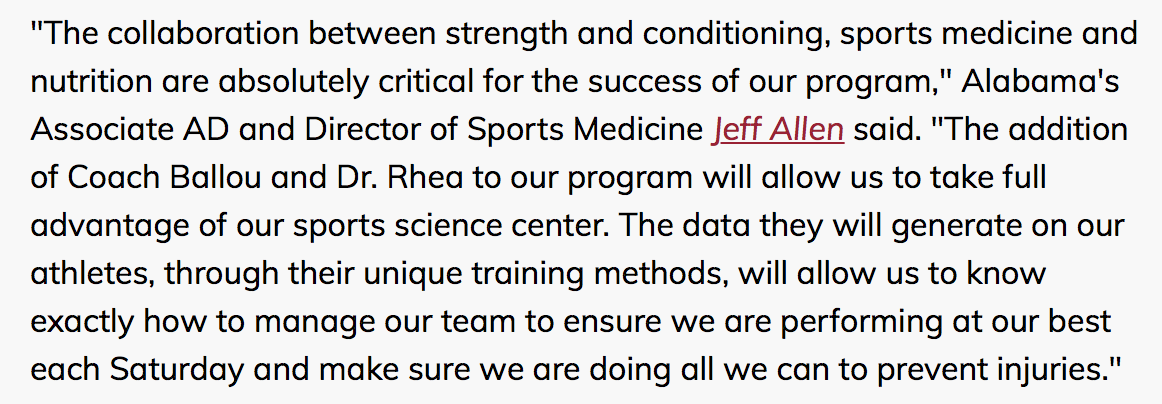 LINK ]Alabama Announces the Hiring of David Ballou and Dr. Matt Rhea (rolltide.com)