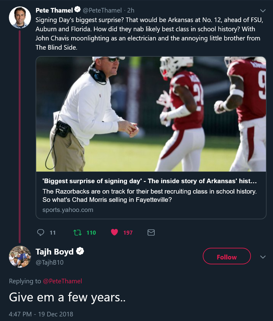 Posted on 12/19/18 at 4:08 pm to beebefootballfan