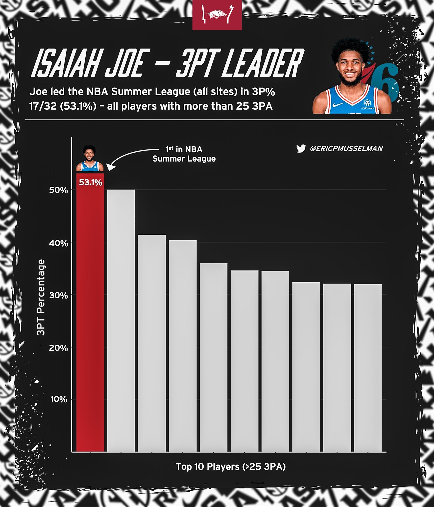 In the last 5 Summer Leagues, that's 3rd-most by a lottery pick. The only 2 with more were Donovan Mitchell (37 in 2017) and Lonzo Ball (36 in 2017).