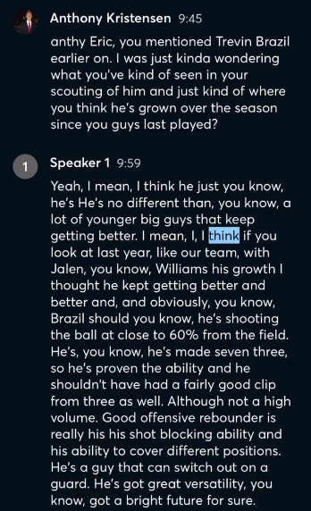 “I think what stood out was their attention to detail and how they prepare . Really I just noticed how deep into detail they went and I could feel the competitive spirit they had and that they they want to win.”