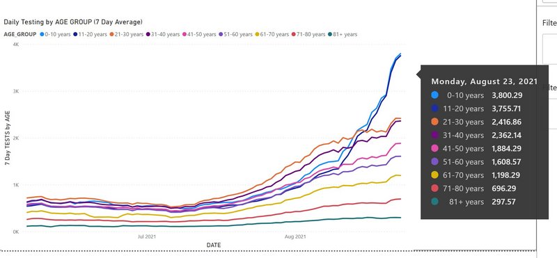 Before last week's school testing surge, cases had peaked on August 6. See surge in 0-18 testing below: