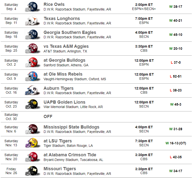 I don't see any similarities between the two. In all three SEC losses this year, Arkansas was the dog in all of them. Arkansas let the Aggies get away with the game but that game could have gone either way. The Bama was an expected loss and K.J was out for State. So not really anything surprising from these results so far.
