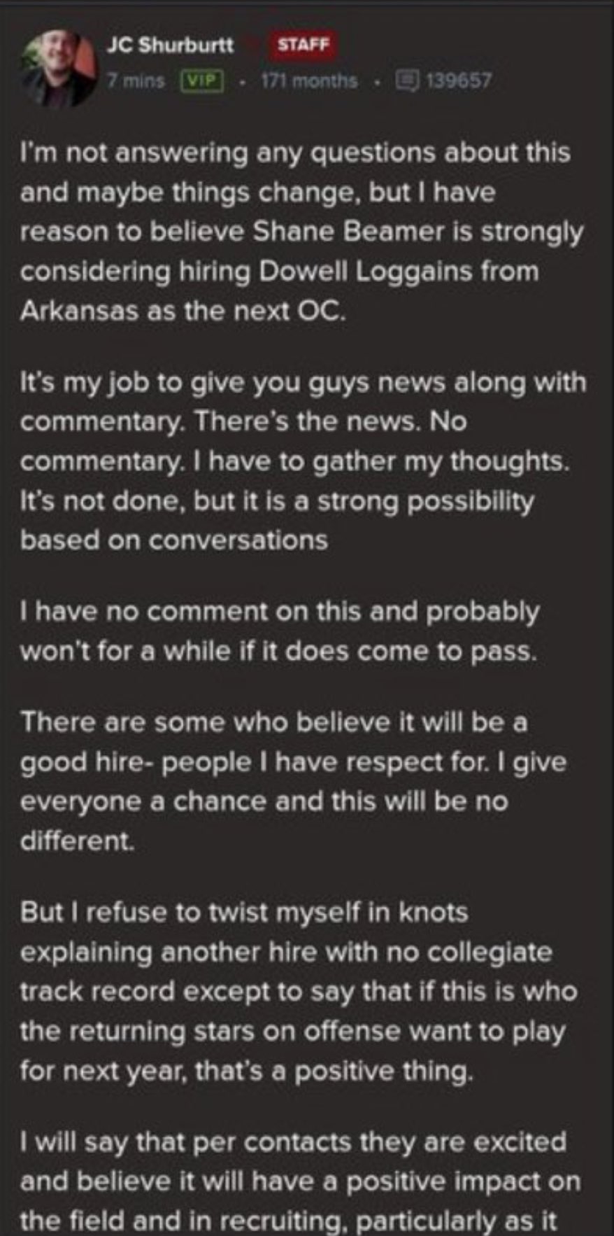 Starting to be some smoke that Loggains is going to be the new South Carolina OC.