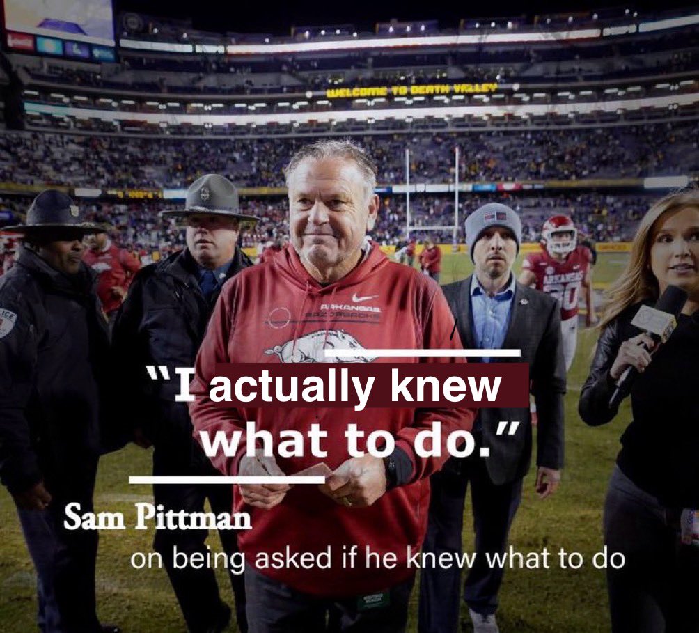 • Coach Pittman said he wanted a man that loved Arkansas as much as Coach Petrino does