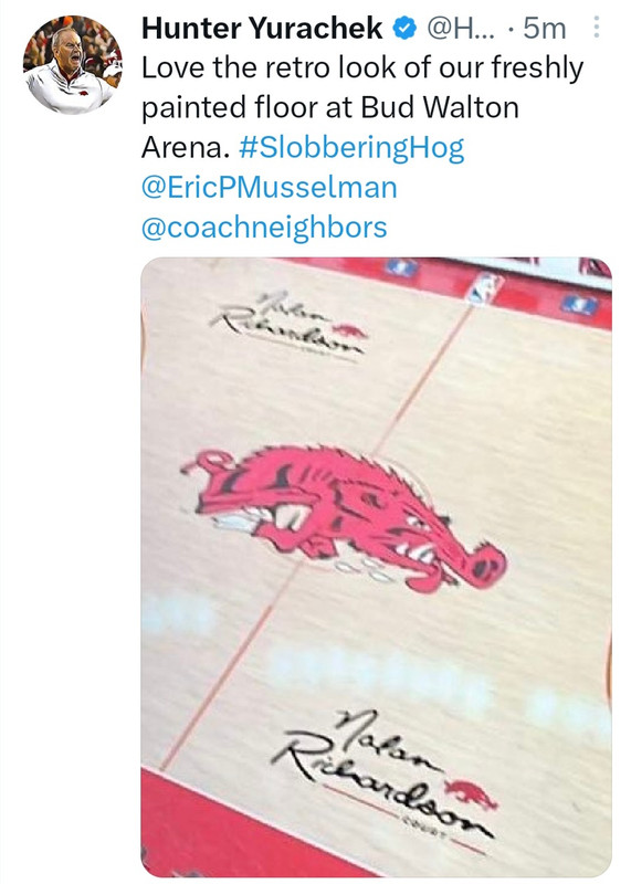I predict extremely good news on the returning players and transfer portal announcements. Multiple Men's NC's incoming. Slobberin' Hog on Nolan Richardson court will ignite our return to greatness.