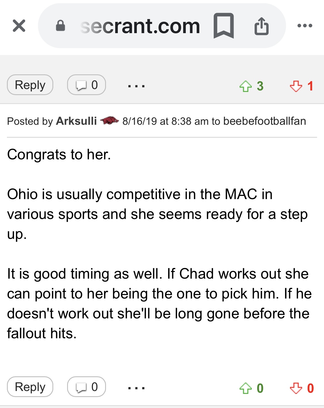 I was going to say she's a below average AD, but a quick look at her resume shows she's been quite successful at her current job and has enjoyed three straight 9 win seasons in football. Perhaps, instead of blaming her, we should have hired to be the regular AD and let her pick the head coach for football.