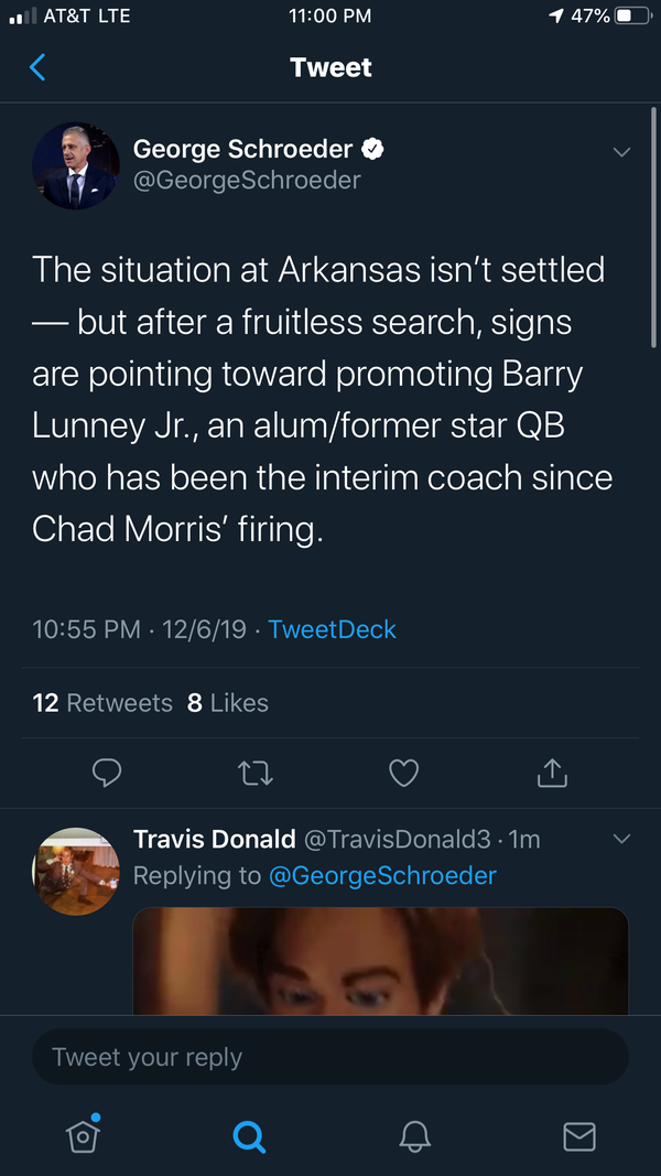 At this stage of hell I’d likely bring back Petrino (or maybe even HDN) on a incentive laced deal and let Lunney be asst HC.