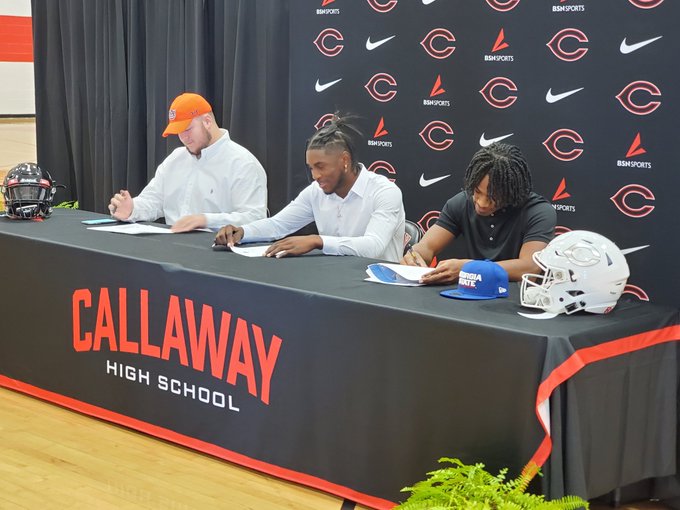 It's official. Callaway's Jacob Freeman (Georgia State), Cartavious "Tank" Bigsby (Auburn) and Tate Johnson (Auburn) sign their letters of intent this morning. Congratulations to each of them. Way to go men.