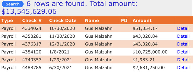 just two payments, one 5k and one 7k. so it could be some sort of travel reimbursement. the payments are listed as vendor and not as payroll.