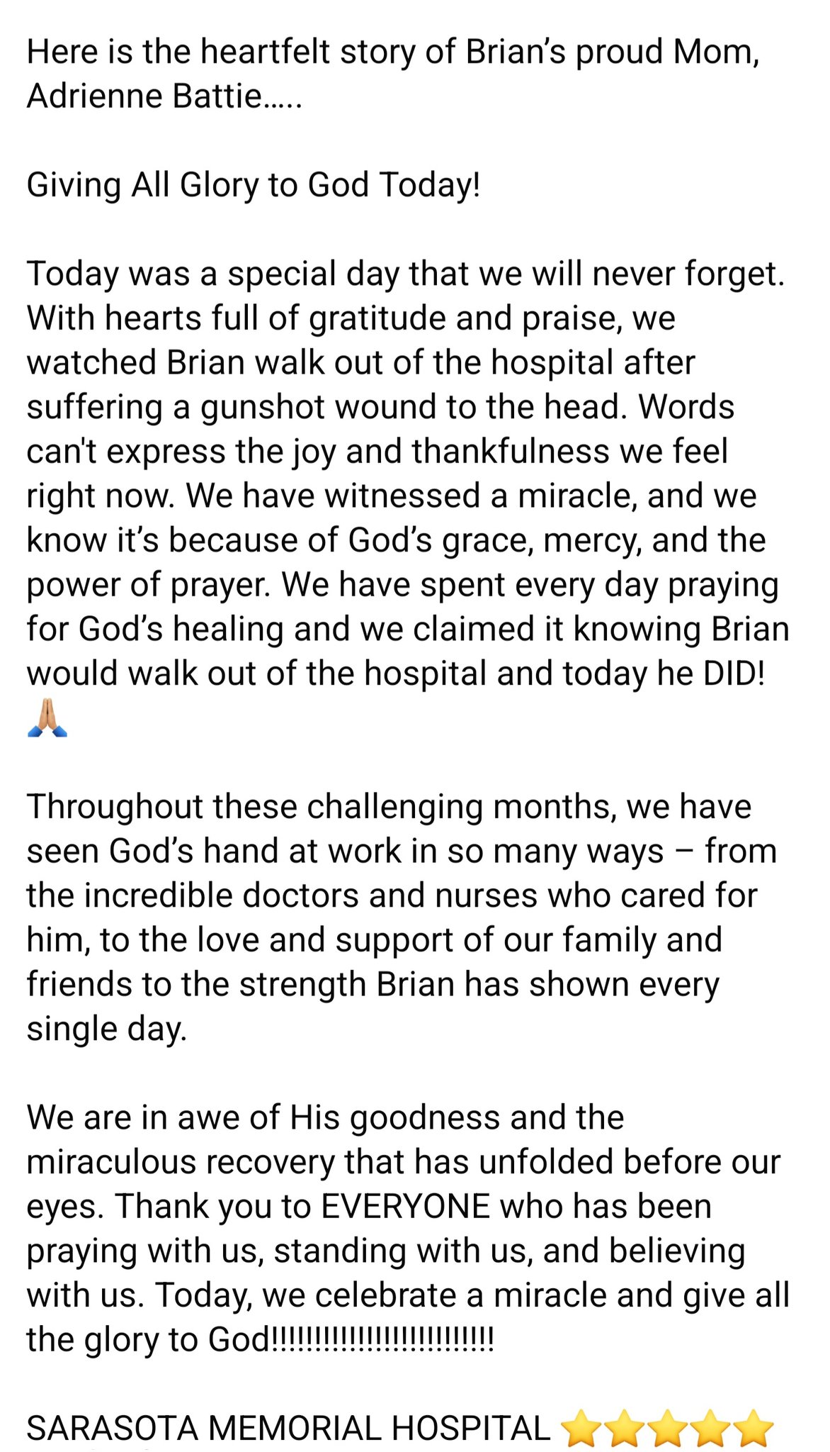 It is the power of prayer and a mighty God who loves Brian and has a great plan for his life.