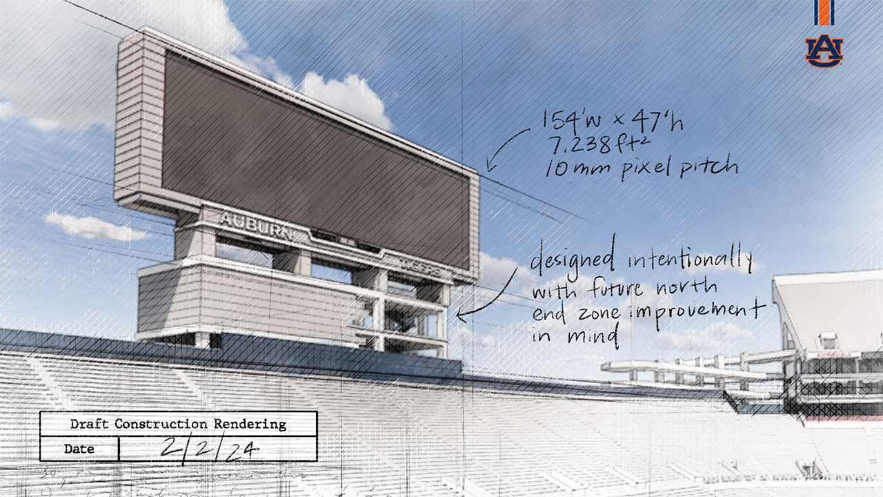 Huge news: Auburn BOT approves plan for new video board in north end zone at Jordan-Hare Stadium. A key part of this plan "will be for the supporting structure to be compatible with any future project that might occur in the north end zone."