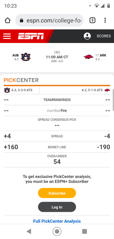 That’s what ESPN has as the money like. Auburn -200 and Arky +170