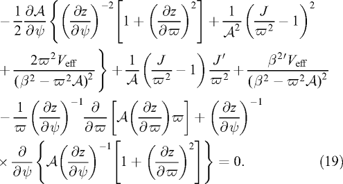 We notice that the coefficient of \partial \mathstrut{\cal A} / \partial \psi is simply the BE, which vanishes at a local extremum of the action. One may easily check that the other terms yield the conventional GSE, but written in our new coordinates.