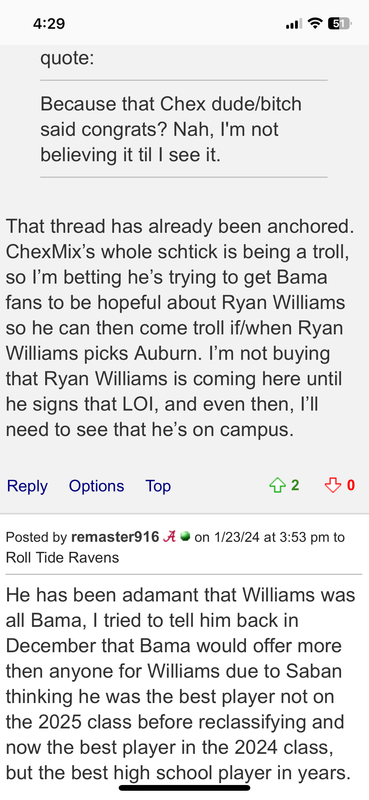 RW is bama bound. Price tag was too high so were moving on. Bama used the money that was freed up by other players leaving and dumped it in Ryan's lap so they would avoid embarrassment.