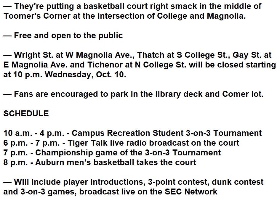 Regarding the Toomers Tip Off now that the plans are finalized.