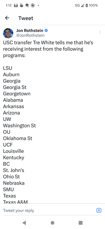 Originally from Dallas, White was ranked No. 35 overall in the 2022 class by 247Sports. He committed to Kansas as a sophomore before choosing USC over Oklahoma State and Auburn among others after transferring to Prolific Prep in California for his senior season.