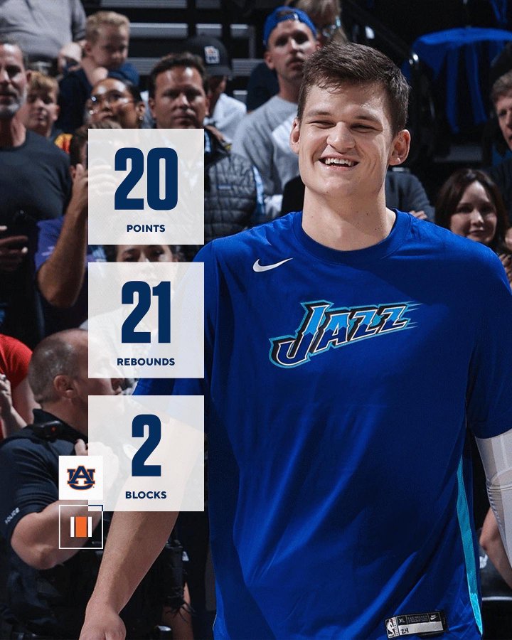 Big Walk is the first rookie in Utah Jazz history to have a 20-point, 20-rebound game.