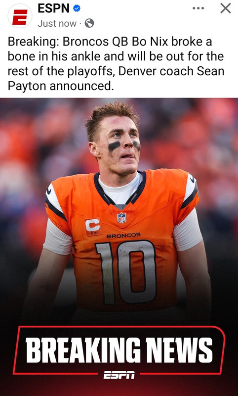 ESPN just had breaking news that he's out for the rest of the playoffs with a broken ankle