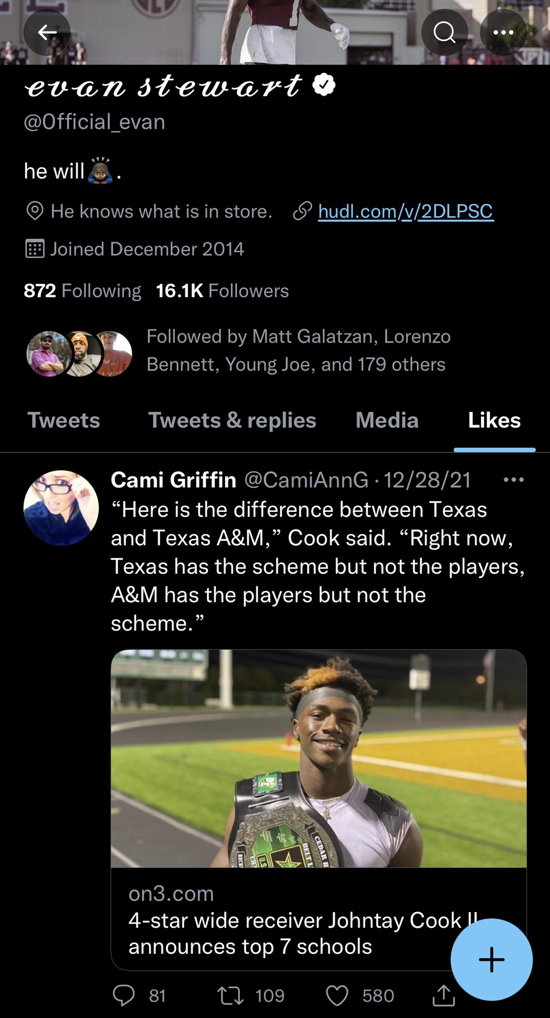 5 Star A&M WR Evan Stewart retweeted this. Doesnt think A&M has the "scheme"