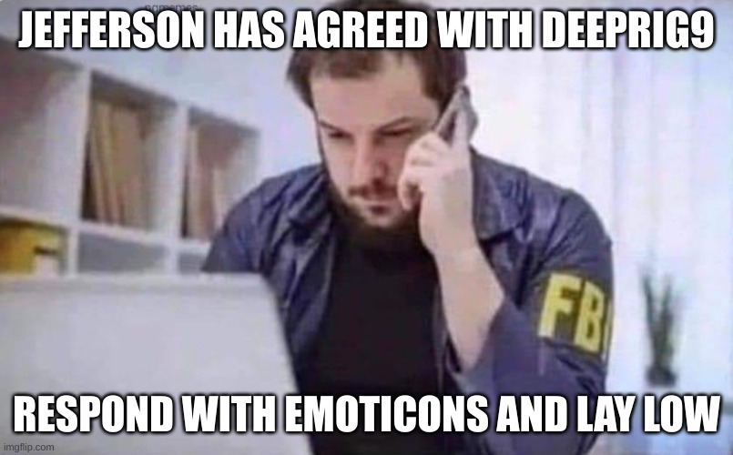 I predict emoticons from our assigned fbi agent. He won't post anything of substance.