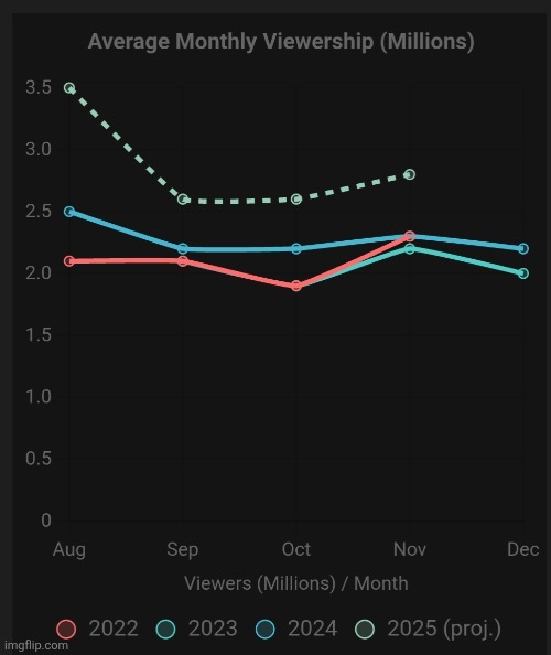 I did see that YouTubeTV now accounts for 15% of ESPN subscriptions, so there should be a small dip. Not really any good wall to wall Saturday of games either. Will pick up in November as the rivalry games start and playoff implications come more into play.