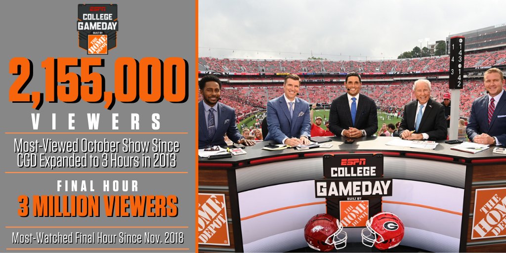 ESPN's College GameDay in Athens last Saturday was the most watched College GameDay broadcast since 2013. The last hour of the game was the most watched since 2018.