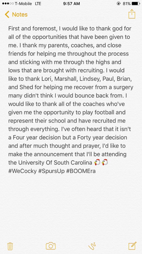 Just provided the ones who aren't Carolina Commits that we are targeting, the players already committed to USC all saying they had a great visit and that we're their #1, etc.