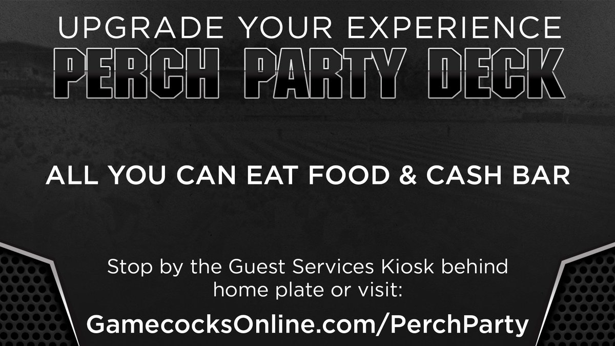 reserve your spot here https://gamecocksonline.com/sports/2019/2/27/Perch-Party-Deck.aspx for upcoming games - starting at $30.