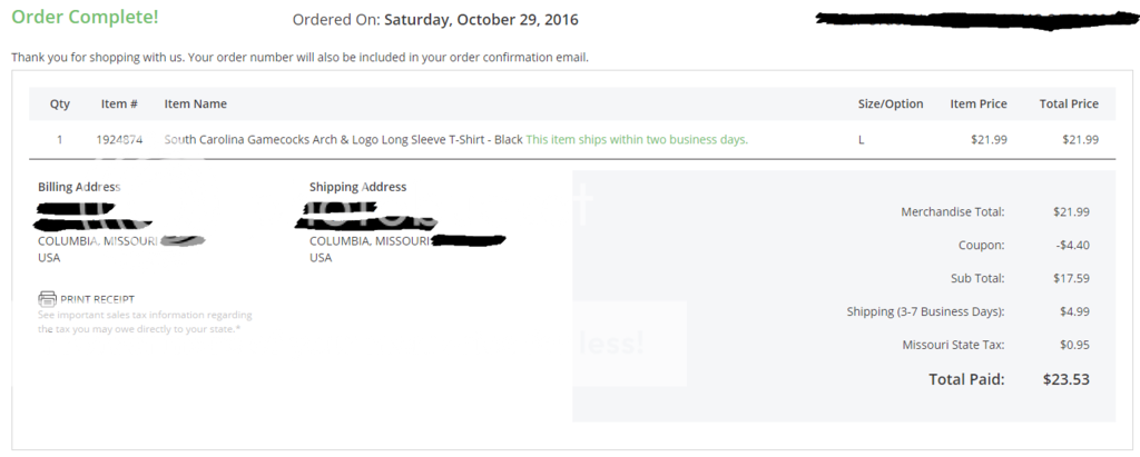 For those that don't know, TT16 and I have a bet on whoever loses the Mizz/SC game has to buy a shirt for the other team and post a thread with a pic.
