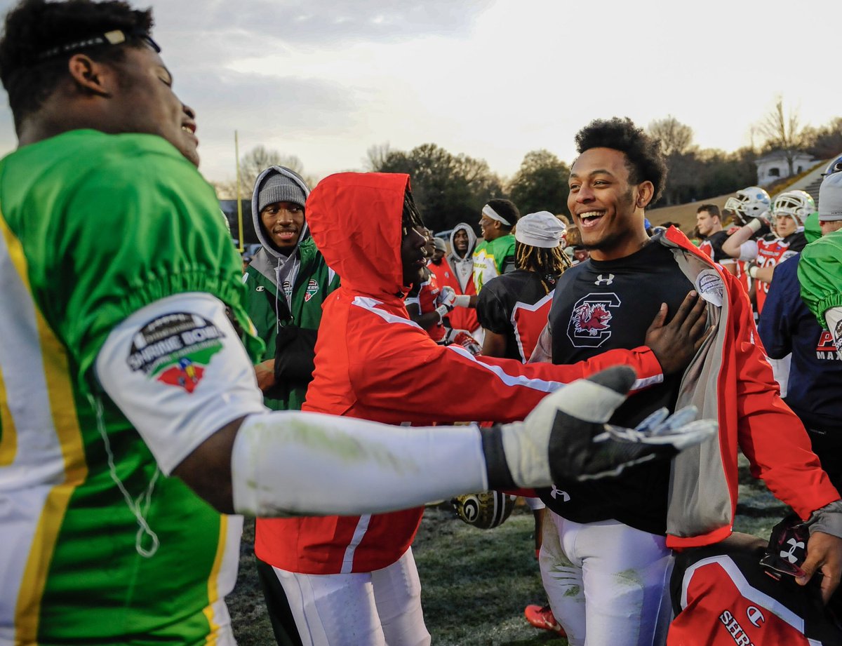 Pic of Joyner and Sandidge after the Shrine Bowl. Joyner was showing Sandidge the other Carolina recruit's shirt.