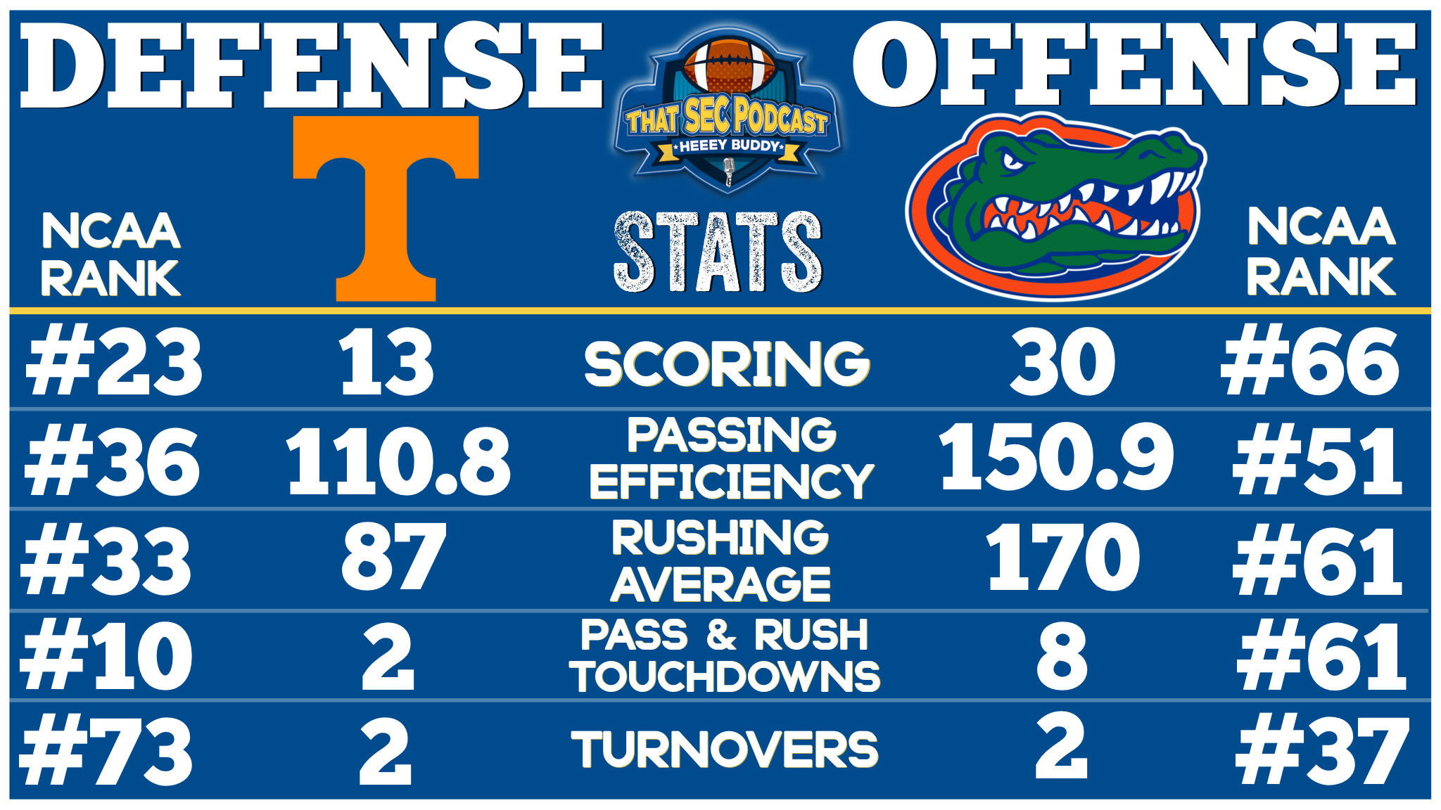 Effective passing that can lead to real scoring on our part. With Tenn it's the amount of sacks and tackles for loss they have generated which can really hurt an offense that isn't burning them with intermediate and longer passes. Tenn has 3 different guys that have good moves in getting after the QB. Their QB Milton was pretty crappy with his intermediate and long throws this past week though as he throws a hard to catch ball if it's a little off target.