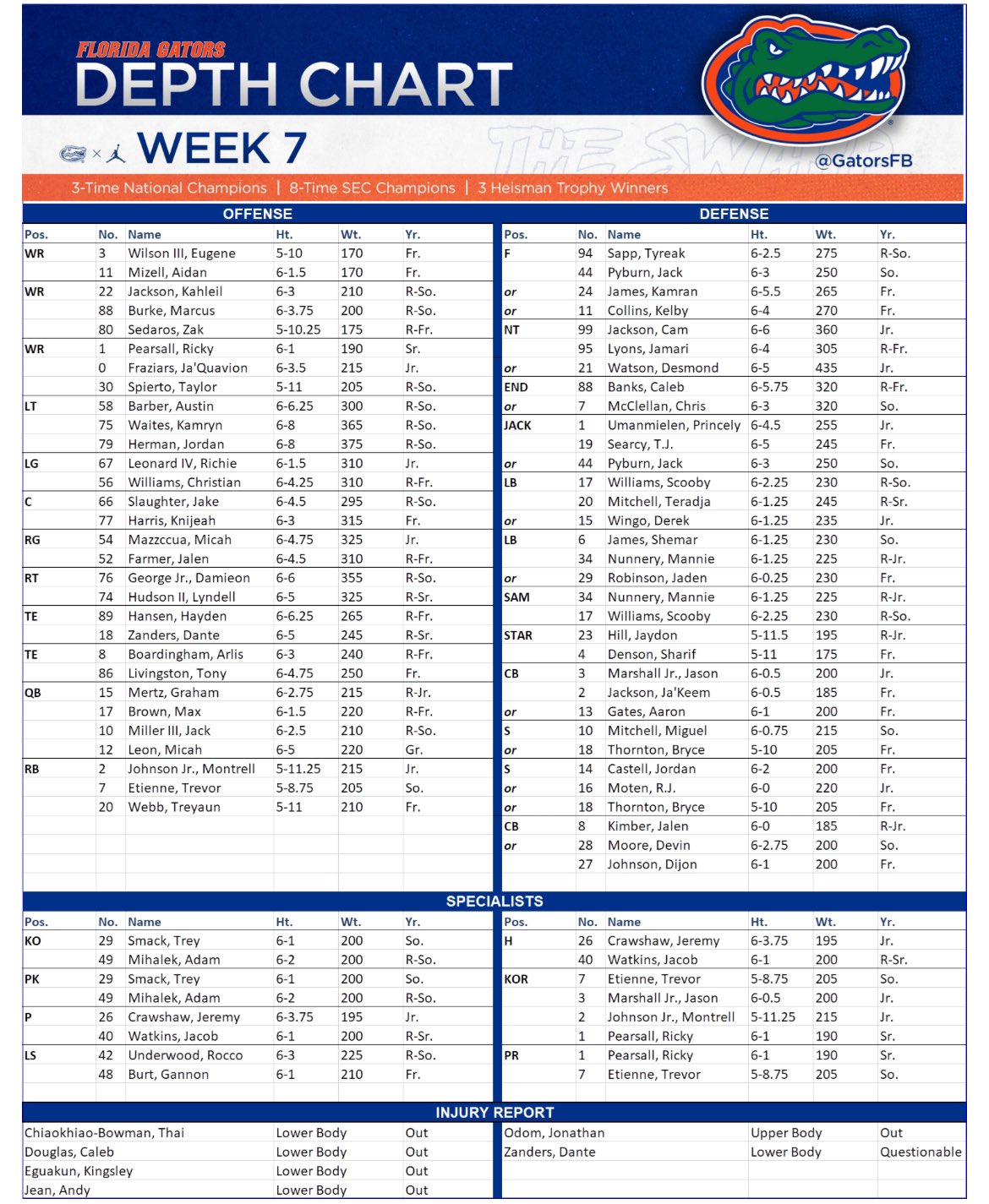 USCe offensive line has been terrible. If Spencer had a better team around him as good as he has played this year. But they had 2 weeks to put 9 in the box and make Mertz beat them will see if Florida can get pressure on Rattler and make him make some mistakes throwing down field.