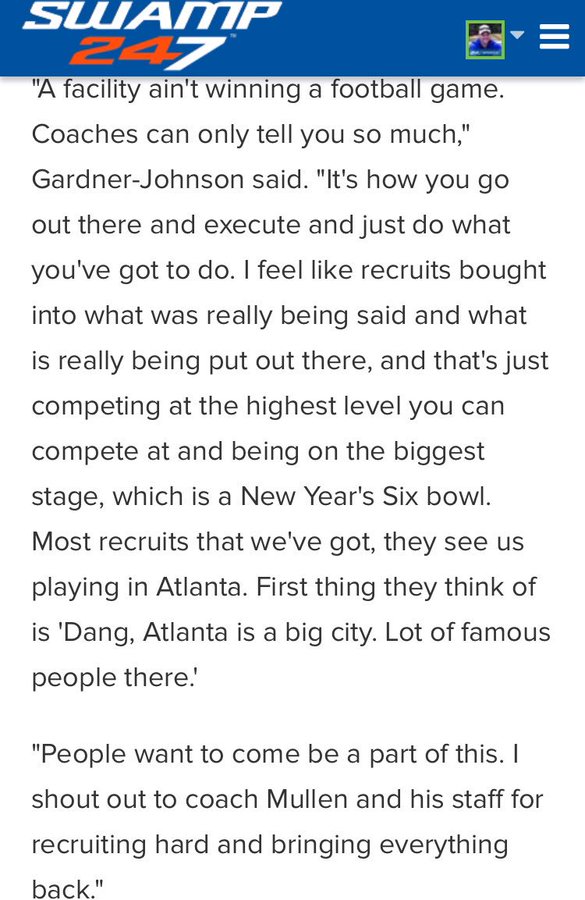 UF should not be so damn far behind in having state of the art football facilities. Recruits see UF and compare it to AU, Bama, UGA and guess what? It does sway some top athletes away. Mullen is good at polishing a turd and selling it. He approaches things differently and is 110% positive and it helps that Stricklin and he had previous experience together at MSU.